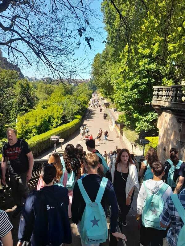 Todos os sábados e domingos, tens a oportunidade de visitar cidades escocesas em grupo, como a capital escocesa, Edimburgo, que é para muitos uma fonte de inspiração, desde que não seja o teu dia de chegada ou partida. Por exemplo, podes encantar-te com a famosa Cidade Velha de Edimburgo e a Royal Mile, visitar o Parlamento Escocês, apreciar a vista magnífica do Arthur's Seat ou visitar o Museu Nacional da Escócia. A cidade combina cultura e história, então com certeza nunca ficarás entediado. Encontrarás informações sobre as excursões disponíveis durante a tua estadia na escola.