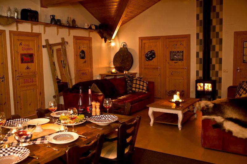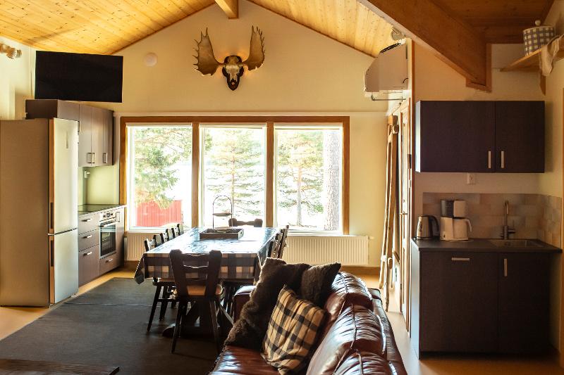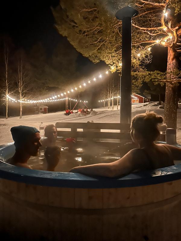 No recinto encontras várias comodidades. Queres relaxar durante ou entre as atividades? O espaço situa-se junto ao deslumbrante lago gelado de Gastsjö, onde podes passear pelo bosque ou deslizar até ao lago com boias da pista de neve. Podes ainda usufruir, uma vez, da sauna ou da banheira de hidromassagem, com uma vista fantástica sobre o lago e, quem sabe, assistir ao espetáculo das luzes do Norte. Nos tempos livres, também é possível reservar atividades extra; até durante a noite há opções divertidas para tornar a tua experiência ainda mais completa.
