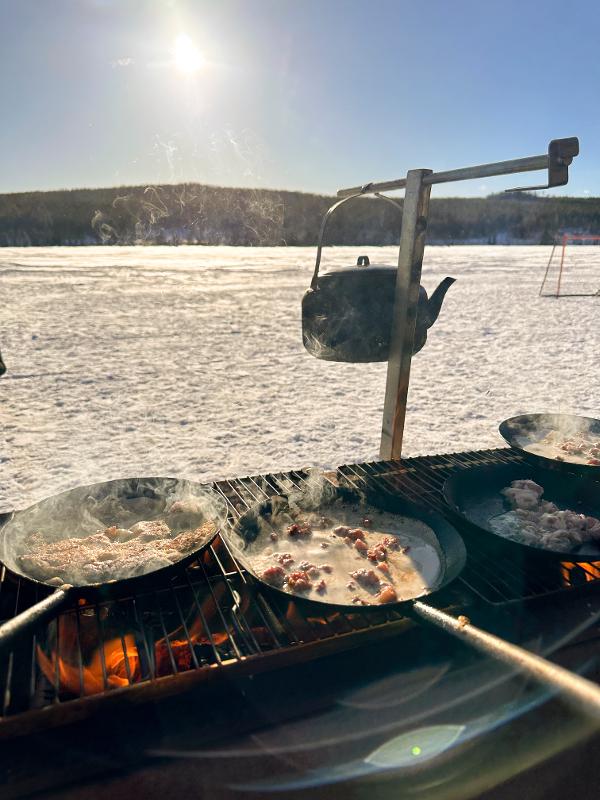 Durante a tua estadia na Suécia, serás diariamente servido com três deliciosas refeições, adaptadas ao teu programa de aventura. Na acolhedora sala de refeições, o dia começa com um pequeno-almoço variado, incluindo especialidades tradicionais suecas. O almoço é muitas vezes preparado em fogueiras no acampamento. Quando passas o dia fora em atividades, recebes um prático e nutritivo almoço-piquenique, perfeito para desfrutar durante experiências como a pesca ou as caminhadas.
