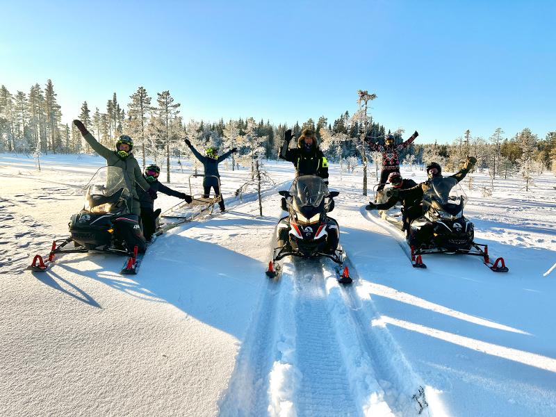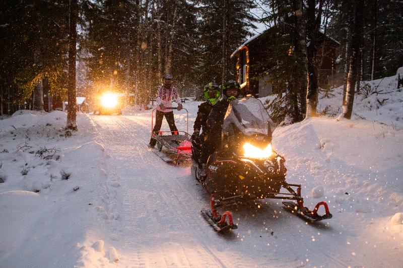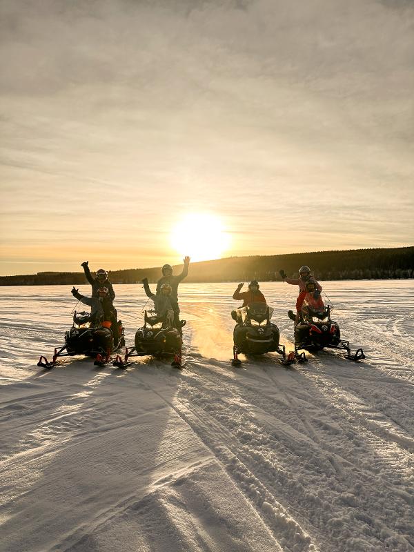 Explora a vasta paisagem de inverno de mota de neve. Podes sentar-te num trenó puxado pela mota de neve ou seguir como passageiro na mota de um guia. Atravessamos florestas e lagos gelados e, com um pouco de sorte, podes até avistar um alce ou outros animais selvagens! É uma experiência que transmite uma sensação de liberdade como nunca antes. O percurso é ajustado aos desejos do grupo e será, sem dúvida, uma atividade que não esquecerás tão cedo!
