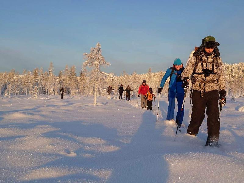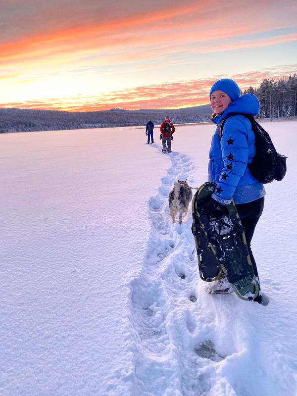 Calça as tuas raquetes de neve e segue em direção a um miradouro deslumbrante sobre a paisagem invernal, no topo da montanha Gastsjö. Pelo caminho, o guia vai-te explicando tudo sobre a natureza e os animais desta região. Na descida, haverá saltos e algumas partes mais técnicas de escalada. Juntamente com o guia escolhe-se o melhor percurso para regressar; esta caminhada é da inteira responsabilidade dos participantes e, caso o trajeto se torne demasiado arriscado, existe sempre uma alternativa segura para descer.