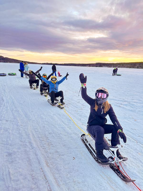 Agarra-te a uma corda e deixa-te puxar por uma mota de neve. Com a velocidade sentes a adrenalina a percorrer o corpo, enquanto a neve fresca e o vento no rosto te fazem vibrar - uma experiência que te faz voltar a sentir-te criança! Seja num trenó, numa boia ou em esquis, és puxado a um ritmo ajustado sobre o lago gelado. No intervalo, podes aquecer-te junto a uma fogueira no lago e saborear um agradável almoço acompanhado de um café ou de um chocolate quente.