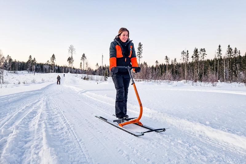 Uma atividade de inverno divertida e dinâmica é a trotinete de neve. Ao longo de um percurso em descida, vais deslizando por trilhos estreitos na floresta e atravessando lagos gelados. Controlar a direção, sobretudo nas descidas, é um desafio que garante sempre muitos momentos de diversão. A trotinete de neve é adequada para todos, e o percurso pode ser adaptado em termos de nível e velocidade.